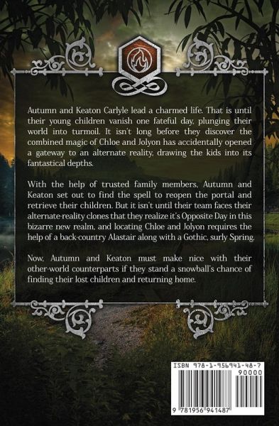 Autumn and Keaton Carlyle lead a charmed life. That is until their young children vanish one fateful day, plunging their world into turmoil. It isn't long before they discover the combined magic of Chloe and Jolyon has accidentally opened a gateway to an alternate reality, drawing the kids into its fantastical depths. With the help of trusted family members, Autumn and Keaton set out to find the spell to reopen the portal and retrieve their children. But it isn't until their team faces their alternate-reality clones that they realize it's Opposite Day in this bizarre new realm, and locating Chloe and Jolyon requires the help of a back-country Alastair along with a Gothic, surly Spring. Now, Autumn and Keaton must make nice with their other-world counterparts if they stand a snowball's chance of finding their lost children and returning home.