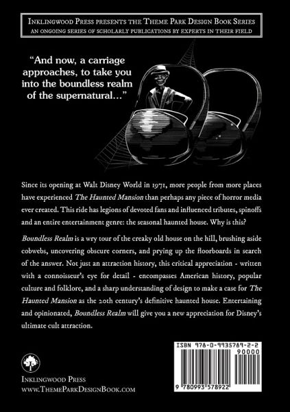 "And now, a carriage approaches, to take you into the boundless realm of the supernatural..." Since its opening at Walt Disney World in 1971, more people from more places have experienced The Haunted Mansion than perhaps any piece of horror media ever created. This ride has legions of devoted fans and influenced tributes, spinoffs and an entire entertainment genre: the seasonal haunted house. Why is this? Boundless Realm is a wry tour of the creaky old house on the hill, brushing aside cobwebs, uncovering obscure corners, and prying up the floorboards in search of the answer. Not just an attraction history, this critical appreciation - written with a connoisseur's eye for detail - encompasses American history, popular culture and folklore, and a sharp understanding of design to make a case for The Haunted Mansion as the 20th century's definitive haunted house. Entertaining and opinionated, Boundless Realm will give you a new appreciation for Disney's ultimate cult attraction.