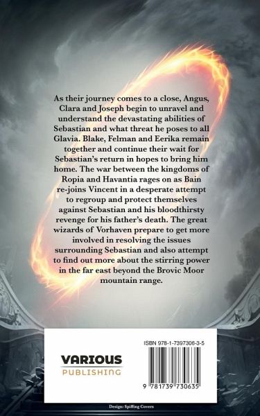 As their journey comes to a close, Angus, Clara and Joseph begin to unravel and understand the devastating abilities of Sebastian and what threat he poses to all Glavia. Blake, Felman and Eerika remain together and continue their wait for Sebastian's return in hopes to bring him home. The war between the kingdoms of Ropia and Havantia rages on as Bain re-joins Vincent in a desperate attempt to regroup and protect themselves against Sebastian and his bloodthirsty revenge for his father's death. The great wizards of Vorhaven prepare to get more involved in resolving the issues surrounding Sebastian and also attempt to find out more about the stirring power in the far east beyond the Brovic Moor mountain range.