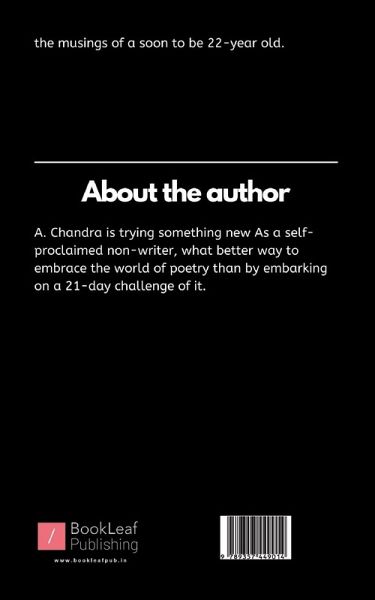 ""A. Chandra is trying something new As a self-proclaimed non-writer, what better way to embrace the world of poetry than by embarking on a 21-day challenge of it.""