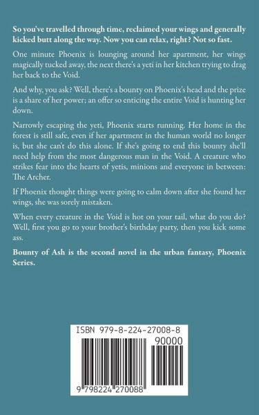 She found her wings. Now the Void wants them. Phoenix barely has time to catch her breath before the chaos begins again. One moment she's hiding in plain sight back in her home world. The next-a yeti storms her kitchen, determined to drag her into the dark. In the Void, power is currency. Her wings are worth a fortune. And there's a bounty on her head. On the run once more, Phoenix must leave behind what little peace she found and seek help from the one being feared more than the bounty itself: The Archer. But trust is dangerous. And the deeper she dives into the Void's underworld, the more she realizes-this isn't just about survival anymore. It's about what she's becoming. Bounty of Ash continues The Phoenix Series with sharpened claws, brutal choices, and a heroine who refuses to burn quietly. When the world hunts your fire, you learn how to strike a match.
