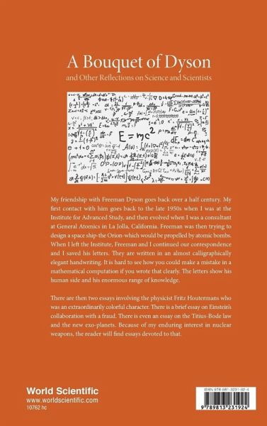 University of Texas at Austin My friendship with Freeman Dyson goes back over a half century. My first contact with him goes back to the late 1950s, when I was at the Institute for Advanced Study, and then evolved when I was a consultant at General Atomics in La Jolla, California. Freeman was then trying to design a space ship — the Orion — which would be propelled by atomic bombs. When I left the Institute, Freeman and I continued our correspondence and I saved his letters. They are written in an almost calligraphically elegant handwriting. It is hard to see how you could make a mistake in a mathematical computation if you wrote that clearly. The letters show his human side and his enormous range of knowledge. There are then two essays involving the physicist Fritz Houtermans who was an extraordinarily colorful character. There is a brief essay on Einstein's collaboration with a fraud. There is even an essay on the Titius-Bode law and the new exo-planets. Because of my enduring interest in nuclear weapons, the reader will find essays devoted to that. There is also a bit of fiction at the end.