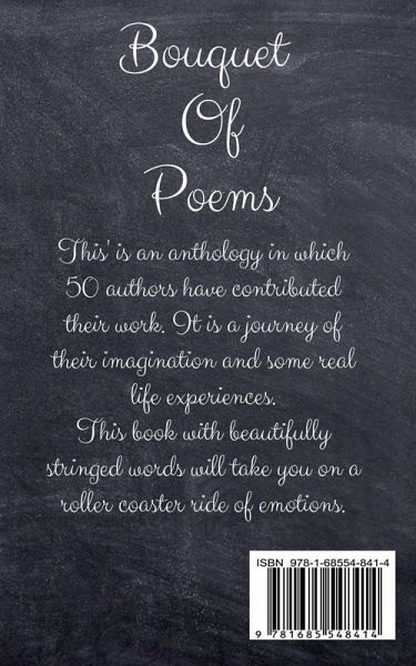 'BOUQUET OF POEMS' is an anthology in which around 50 authors have contributed their work. It is a journey of their imagination and some real life experiences. This book with beautifully stringed words will take you on a roller coaster ride of emotions.