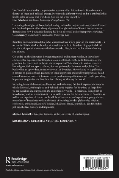 "This is a major contribution to our understanding of Pierre Bourdieu's work. Both experienced scholars and curious beginners will find much of value here. In tracing the origins of Bourdieu's thinking back to his early experiences, Grenfell teases out the development of his theory of practice through analyses of French institutions and demonstrates how Bourdieu's thinking has both historical and contemporary relevance. By framing this as metanoia, Grenfell successfully highlights the radical nature of the 'new gaze' that Bourdieu brought to bear on society and the enduring value of this perspective."
