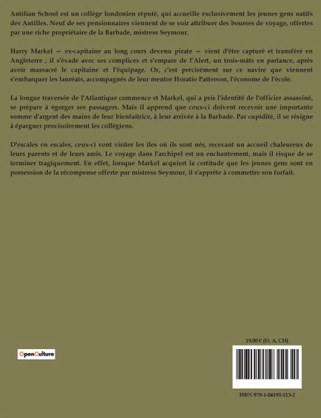 Antilian School est un collège londonien réputé, qui accueille exclusivement les jeunes gens natifs des Antilles. Neuf de ses pensionnaires viennent de se voir attribuer des bourses de voyage, offertes par une riche propriétaire de la Barbade, mistress Seymour. Harry Markel ¿ ex-capitaine au long cours devenu pirate ¿ vient d'être capturé et transféré en Angleterre ; il s'évade avec ses complices et s'empare de l¿Alert, un trois-mâts en partance, après avoir massacré le capitaine et l'équipage. Or, c'est précisément sur ce navire que viennent s'embarquer les lauréats, accompagnés de leur mentor Horatio Patterson, l'économe de l'école. La longue traversée de l'Atlantique commence et Markel, qui a pris l'identité de l'officier assassiné, se prépare à égorger ses passagers. Mais il apprend que ceux-ci doivent recevoir une importante somme d'argent des mains de leur bienfaitrice, à leur arrivée à la Barbade. Par cupidité, il se résigne à épargner provisoirement les collégiens. D'escales en escales, ceux-ci vont visiter les îles où ils sont nés, recevant un accueil chaleureux de leurs parents et de leurs amis. Le voyage dans l'archipel est un enchantement, mais il risque de se terminer tragiquement. En effet, lorsque Markel acquiert la certitude que les jeunes gens sont en possession de la récompense offerte par mistress Seymour, il s'apprête à commettre son forfait.