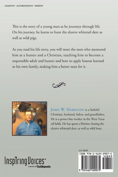 This is the story of a young man as he journeys through life. On his journey, he learns to hunt the elusive whitetail deer as well as wild pigs. As you read his life story, you will meet the men who mentored him as a hunter and a Christian, teaching him to become a responsible adult and hunter and how to apply lessons learned to his own family, making him a better man for it.