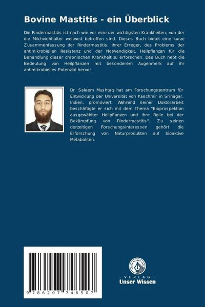 Die Rindermastitis ist nach wie vor eine der wichtigsten Krankheiten, von der die Milchviehhalter weltweit betroffen sind. Dieses Buch bietet eine kurze Zusammenfassung der Rindermastitis, ihrer Erreger, des Problems der antimikrobiellen Resistenz und der Notwendigkeit, Heilpflanzen für die Behandlung dieser chronischen Krankheit zu erforschen. Das Buch hebt die Bedeutung von Heilpflanzen mit besonderem Augenmerk auf ihr antimikrobielles Potenzial hervor.
