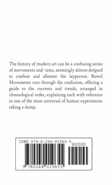 The history of modern art can be a confusing series of movements and -isms, seemingly almost designed to confuse and alienate the layperson. Bowel Movements cuts through the confusion, offering a guide to the currents and trends, arranged in chronological order, explaining each with reference to one of the most universal of human experiences: taking a dump. This humorous cartoon book contains rude words and pictures. A perfect gift for anyone who loves art, toilet humour or perhaps even both. New edition.