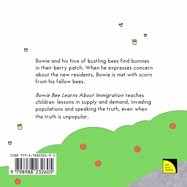 Bowie and his hive of bustling bees find bunnies in their berry patch. When he expresses concern about the new residents, Bowie is met with scorn from his fellow bees. Bowie Bee Learns About Immigration teaches children lessons in supply and demand, invading populations and speaking the truth, even when the truth is unpopular.