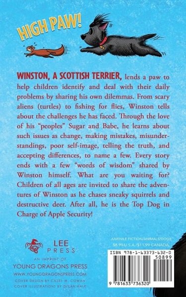 Winston, a Scottish Terrier, lends a paw to help children identify and deal with their daily problems by sharing his own dilemmas. From scary aliens (turtles) to fishing for flies, Winston tells about the challenges he has faced. Through the love of his "peoples" Sugar and Babe, he learns about such issues as change, making mistakes, misunderstandings, poor self-image, telling the truth, and accepting differences, to name a few. Every story ends with a few "words of wisdom" shared by Winston himself. What are you waiting for? Children of all ages are invited to share the adventures of Winston as he chases sneaky squirrels and destructive deer. After all, he is the Top Dog in Charge of Apple Security!