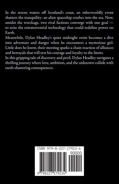 In the serene waters off Scotland's coast, an otherworldly event shatters the tranquility: an alien spaceship crashes into the sea. Now, amidst the wreckage, two rival factions converge with one goal - to seize the extraterrestrial technology that could redefine power on Earth. Meanwhile, Dylan Headley's quiet midnight swim becomes a dive into adventure and danger when he encounters a mysterious girl. Little does he know, their meeting sparks a chain reaction of alliances and betrayals that will test his courage and loyalty to the limits. In this gripping tale of discovery and peril, Dylan Headley navigates a thrilling journey where love, ambition, and the unknown collide with earth-shattering consequences.