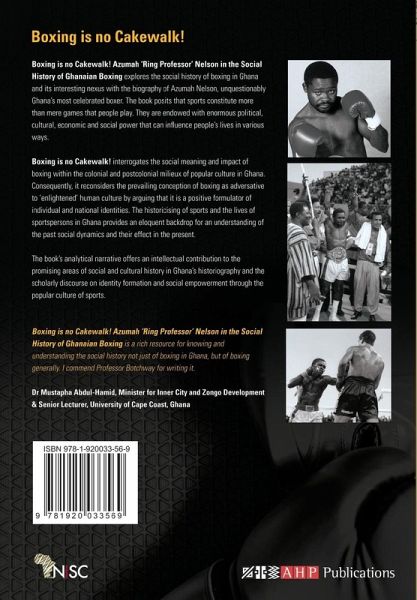 Boxing is no cakewalk! Azumah ‘Ring Professor’ Nelson in the Social History of Ghanaian Boxing explores the social history of boxing in Ghana and its interesting nexus with the biography of Azumah Nelson, unquestionably Ghana’s most celebrated boxer. The book posits that sports constitute more than mere games that people play. They are endowed with enormous political, cultural, economic and social power that can influence people’s lives in various ways. Boxing is no cakewalk! interrogates the social meaning and impact of boxing within the colonial and postcolonial milieux of popular culture in Ghana. Consequently, it reconsiders the prevailing conception of boxing as adversative to ‘enlightened’ human culture by arguing that it is a positive formulator of individual and national identities. The historicising of sports and the lives of sportspersons in Ghana provides an eloquent backdrop for an understanding of the past social dynamics and their effect in the present. The book’s analytical narrative offers an intellectual contribution to the promising areas of social and cultural history in Ghana’s historiography and the scholarly discourse on identity formation and social empowerment through the popular culture of sports.