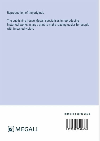 Reproduction of the original. The publishing house Megali specialises in reproducing historical works in large print to make reading easier for people with impaired vision.