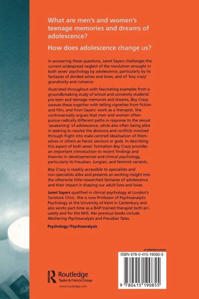 In answering these questions, Janet Sayers highlights the revolution wrought in both sexes' psychology by adolescence, particularly by its fantasies of divided selves and loves and of 'boy crazy' grandiosity and romance. Illustrated throughout with fascinating examples from a groundbreaking study of adolescent memories and dreams, Boy Crazy presents an engaging account of this little-researched period of human development. Sayers also draws on her own work as a therapist, and weaves in vignettes from fiction and film, to demonstrate the significance we attach in adulthood to our experiences as adolescents. She suggests that men and women respond differently to the sexual awakening that takes place during their teens, and to their own memories of that part of their life. In relating the findings of her research the author also explores to what extent the theories of Freud, Jung and feminism shape our understanding of the formative effect of adolescent experiences and emotions. Boy Crazy provides a fascinating insight into the repercussions of adolescence on our adult lives and loves and will appeal to the general and specialist reader alike.