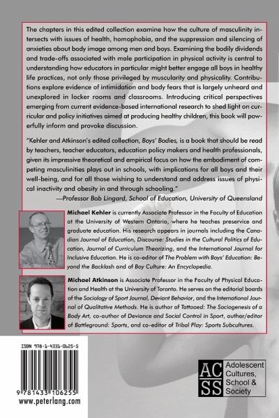 «Kehler and Atkinson's edited collection, 'Boys' Bodies', is a book that should be read by teachers, teacher educators, education policy makers and health professionals, given its impressive theoretical and empirical focus on how the embodiment of competing masculinities plays out in schools, with implications for all boys and their well-being, and for all those wishing to understand and address issues of physical inactivity and obesity in and through schooling.» (Professor Bob Lingard, School of Education, University of Queensland)