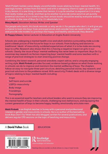 From bullying and sexism to traditional ideals of masculinity, outdated expectations of what it is to be male are causing boys to suffer. Boys Do Cry examines key research on factors impacting boysâ mental health and provides teachers with practical strategies to start enacting positive change.