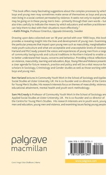 "In Boys, Young Men, and Violence, Ken Harland and Sam McCready provides the results of an 18-year study that focused on the development of adolescent boys and young men ranging in ages from eleven to twenty-three. ... They provide data and ideas that are particularly needed by educators, professionals, officials, and researchers worldwide, to better respond to at-risk adolescent boys and young men who struggle with violence on an everyday basis." (Michael R. Shew, Journal of Youth and Adolescence, Vol. 45, 2016)