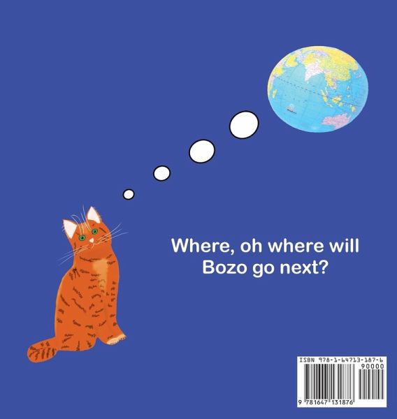 Bozo is a seven toed orange tiger cat. He lives with four year old Philip and his parents. One day, he accidentally discovers that his favorite napping carpet is also magical. It can fly and take him all over the world. On this first trip, the magical carpet flies Bozo to Paris where he meets a beautiful French cat named Fifi. He and Fifi become fast friends. She shows him the sights of Paris and introduces him to French cuisine. At the end of an adventure-filled day, Bozo realizes that it is time to return home. He and Fifi wave goodby. The carpet flies Bozo back to his home. He arrives just in time for his family's arrival. As soon as Philip sees Bozo, he runs over and hugs him. Bozo purrs and realizes that although traveling is fun, it is best to be home with those who love him.