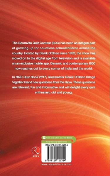 The Bournvita Quiz Contest (BQC) has been an integral part of growing up for countless schoolchildren across the country. Hosted by Derek O'Brien since 1992, the show has moved on to the digital age from television and is available on an exclusive mobile app. Dynamic and contemporary, BQC now reaches out to every corner of India and the world. In BQC Quiz Book 2017, Quizmaster Derek O'Brien brings together brand new questions from the show. These questions are relevant, fun and informative and will delight every quiz enthusiast, old and young.
