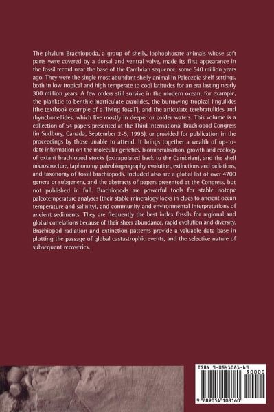 This collection of conference papers presents information on the molecular genetics, biomineralization, growth and ecology of extant brachiopod stocks (extrapolated back to the Cambrian), and the shell microstructure, taphonomy, paleogeography, evolution, and taxonomy of fossil brachiopods.