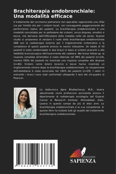 Il trattamento del carcinoma polmonare non operabile rappresenta una sfida sia per l'entità che per i sintomi locali, con conseguente peggioramento del performance status dei pazienti. La brachiterapia endobronchiale è una modalità consolidata per la palliazione dei sintomi, ossia dispnea, emottisi e tosse, che derivano dall'infiltrazione della malattia nelle vie aeree. Questo studio si proponeva di valutare il ruolo della brachiterapia endobronchiale HDR con la radioterapia esterna per il miglioramento sintomatico e la compliance di questi pazienti presso la nostra istituzione. Un totale di 50 pazienti è stato randomizzato in due bracci in base ai sintomi presenti e alla fattibilità broncoscopica dell'inserimento del catetere. Nel breve follow-up, la risposta completa all'emottisi è stata ottenuta nel 98% dei pazienti (n=14), mentre l'80% dei pazienti ha mostrato una risposta completa alla dispnea (n=46). Sintomi come dolore toracico e tosse hanno mostrato un miglioramento minore dopo la brachiterapia endobronchiale. La riespansione dell'atelettasia è stata osservata nel 100% dei pazienti (n=29). I valori in entrambi i bracci sono stati confrontati utilizzando il test del chi-quadro di Pearson.