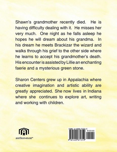 Shawn's grandmother recently died. He is having difficulty dealing with it. He misses her very much. One night as he falls asleep he hopes he will dream about his grandma. In his dream he meets Brackizar the wizard and walks through his grief to the other side where he learns to accept his grandmother's death. His encounter is assisted by Lillie an enchanting faerie and a mysterious green stone.