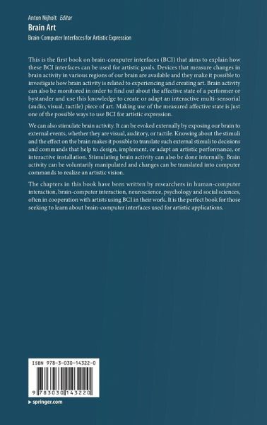 This is the first book on brain-computer interfaces (BCI) that aims to explain how these BCI interfaces can be used for artistic goals. Devices that measure changes in brain activity in various regions of our brain are available and they make it possible to investigate how brain activity is related to experiencing and creating art. Brain activity can also be monitored in order to find out about the affective state of a performer or bystander and use this knowledge to create or adapt an interactive multi-sensorial (audio, visual, tactile) piece of art. Making use of the measured affective state is just one of the possible ways to use BCI for artistic expression.