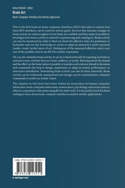 This is the first book on brain-computer interfaces (BCI) that aims to explain how these BCI interfaces can be used for artistic goals. Devices that measure changes in brain activity in various regions of our brain are available and they make it possible to investigate how brain activity is related to experiencing and creating art. Brain activity can also be monitored in order to find out about the affective state of a performer or bystander and use this knowledge to create or adapt an interactive multi-sensorial (audio, visual, tactile) piece of art. Making use of the measured affective state is just one of the possible ways to use BCI for artistic expression.