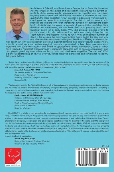 Brain Beat: A Scientific and Evolutionary Perspective of Brain Health examines the origins of the pillars of brain health, expounding the current scientific basis for recommending physical exercise, cognitive exercises, sleep hygiene, socialization and brain-foods. However in addition to the "how" question, the more important "why" question is addressed from a neuro-archeological and evolutionary standpoint. The clinical and laboratory brain sciences are replete with ever increasing numbers of publications about brain plasticity and the powerful aspects of preventative medicine. Once dismissed as non-existent, we now know that brain plasticity and "brain building" occurs on a daily basis. Why did physical exercise evolve to produce new brain cells and connections and how and why did we become "born runners" and become "wired to run"? Why an important function of sleep is the pruning the brain's connections made during the day and why are diverse diets associated with good health in differing traditional human societies? Why is socialization protective against dementia and cardiovascular disease? New scientific, evolutionary and anthropological research is presented on how these processes were ingrained into our brain circuitry and linked to appropriate reward mechanisms, some of which have resulted in "mismatch diseases" today. Disparate disciplines such as geology, climatology and astrophysics give insights as to how our body, brain and mind were forged by "fire and ice". With a better understanding of how we evolved, comes improved adherence and compliance to healthy living proclivities. "In this clearly written book Dr. Michael Hoffman, an outstanding behavioral neurologist, describes the evolution of the human brain. This knowledge of evolution allows the reader to better understand the brain's function, as well as the means by which we older people can help preserve this penultimate gift of nature." Kenneth M. Heilman MD, FAAN The James E. Rooks Jr. Distinguished Professor Department of Neurology University of Florida College of Medicine Gainesville, FL. 32610 "This intriguing book by Dr. Michael Hoffmann is full of interesting points about the connections across our brain, behavior and the world we inhabit. He combines evolutionary concepts with history, philosophy, science and medicine. Everything is connected and his innovative concepts can help us explain the intersection between environment and our brain, and motivate the reader to take better control of their own brain health." Ralph L. Sacco MD MS FAHA FAAN Professor and Olemberg Chair of Neurology Executive Director McKnight Brain Institute Chief of Neurology Jackson Memorial Hospital Miller School of Medicine University of Miami