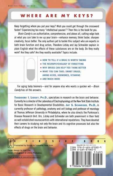 Keep forgetting where you put your keys? Wish you could get through the crossword faster? Experiencing too many "intellectual pauses"? Then this is the book for you. Brain Candy is an authoritative, comprehensive, and above all, cutting-edge look at what you can take to rev up your brain -- enhance memory, think faster, sharpen creativity, focus better. The only authors yet to tackle this subject who are experts in both brain function and drug action, Theodore Lidsky and Jay Schneider explain in plain English what the effects of these substances are on the body. Do they really work? Are they safe? Are they readily available? Topics include: * How to tell if a drug is worth taking * The neuropsychology of forgetting * Why drugs can help you think better * What you can take: smart drugs, amino acids, hormones, vitamins * And much more For aging baby boomers -- and for anyone else who wants a quicker wit -- Brain Candy has all the answers.
