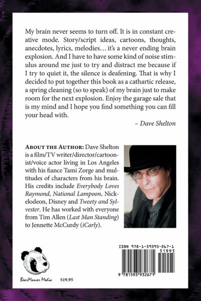 My brain never seems to turn off. It is in constant creative mode. Story/script ideas, cartoons, thoughts, anecdotes, lyrics, melodies. it's a never ending brain explosion. And I have to have some kind of noise stimulus around me just to try and distract me because if I try to quiet it, the silence is deafening. That is why I decided to put together this book as a cathartic release, a spring cleaning (so to speak) of my brain just to make room for the next explosion. Enjoy the garage sale that is my mind and I hope you find something you can fill your head with. - Dave Shelton About the Author: Dave Shelton is a film/TV writer/director/cartoonist/voice actor living in Los Angeles with his fiance Tami Zorge and multitudes of characters from his brain. His credits include Everybody Loves Raymond, National Lampoon, Nickelodeon, Disney and Tweety and Sylvester. He has worked with everyone from Tim Allen (Last Man Standing) to Jennette McCurdy (iCarly).