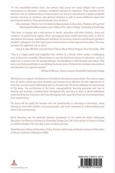 This book is an original contribution to the field of educational neuroscience. The authors argue that all adults should pay more attention and become more reflective of their experiences so that they can learn more deliberately and in a focused way. The book addresses the functioning of the brain, the architecture of the brain, neuroplasticity, learning processes and how to develop and maintain a healthy brain throughout life. Learning to learn is about individuals understanding how they learn and thus developing their capacity to learn by harnessing lessons from neuroscience.