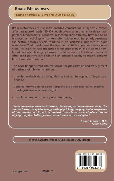 This book will bring current information on the presentation and management of patients with brain metastases, providing available data, giving guidelines that can be applied in day to day practice, updated information for neuro-surgeons, radiation oncologists, medical oncologists, and neuro-oncologists, as well as an overview for physicians in training.
