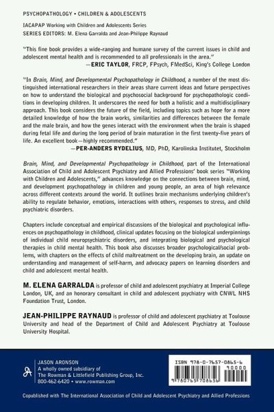 Brain, Mind, and Developmental Psychopathology in Childhood, part of the International Association of Child and Adolescent Psychiatry and Allied Professions' book series "Working with Children & Adolescents" edited by Elena Garralda and Jean-Philippe Raynaud, updates the knowledge about connections between brain, mind, and developmental psychopathology. The volume illuminates our understanding of different types of psychiatric disorders in children—including autism, hyperkinetic disorder, obsessive compulsive disorder, and childhood schizophrenia—and the effects of child maltreatment and deliberate self harm. This book describes how to integrate physical and psychological treatments for child and adolescent mental health problems and advocacy for the treatment of children and adolescents with mental health problems.