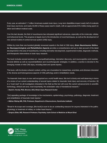 With the contribution from more than one hundred CNS neurotrauma experts, this book provides a comprehensive and up-to-date account on the latest developments in the area of neurotrauma including biomarker studies, experimental models, diagnostic methods, and neurotherapeutic intervention strategies in brain injury research. The book discusses n