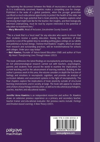This book synthesizes the latest findings on neuroplasticity and learning, drawing on rich phenomenological research carried out with teachers, psychologists, parents and students from around the world to examine the implications for current teaching and for the advancement of learning methods. Building on the author's previous work in this area, the volume considers in depth the function of feelings and emotions in neuroplastic cognition, and provides an analysis of curriculum debates and assessment systems in the light of neuroplasticity. The final chapters explore the implications of brain plasticity outside of structured learning environments and in society at large. The book will appeal to students and scholars of psychology and education, as well as to educational psychologists, coaches, teachers and educational leaders.