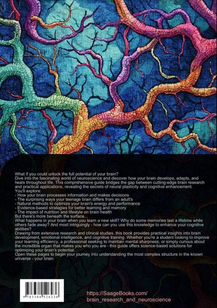 Discover the fascinating world of neuroscience and brain research in this comprehensive guide that bridges scientific knowledge with practical applications.The book explores fundamental aspects of brain energy, training, and damage through evidence-based approaches. Starting with the basics of neuroscience, readers will learn about neural networks, biochemical processes, and cognitive functions that form the foundation of brain operation.Key topics include:- Brain energy metabolism and optimization strategies- Neural plasticity and its role in learning and recovery- Understanding and preventing brain damage- Evidence-based brain training methods- Developmental stages of the brain throughout lifeThe text delves into practical aspects of brain health, covering:- Nutritional requirements for optimal brain function- Rehabilitation methods following brain injury- Cognitive enhancement techniques- Stress management and emotional regulation- Memory improvement strategiesReaders will gain insights into:- How the brain processes information and makes decisions- The impact of different training methods on cognitive performance- Ways to maintain and enhance brain health- Understanding brain development from childhood through adulthoodThis scientific guide combines current research with practical applications, making complex neuroscience concepts accessible while maintaining academic rigor. Whether you're a student, professional, or someone interested in brain science, this book provides valuable knowledge about brain function, development, and optimization.Each chapter includes detailed explanations, scientific data, and practical recommendations, supported by charts and illustrations that help visualize complex concepts.This book was created using innovative technologies such as Artificial Intelligence and specially developed tools - for example, in brainstorming, research, writing, editing, quality assurance, and the design of decorative illustrations.In this way,we want to offer you a particularly coherent, modern, and even higher-quality reading experience.