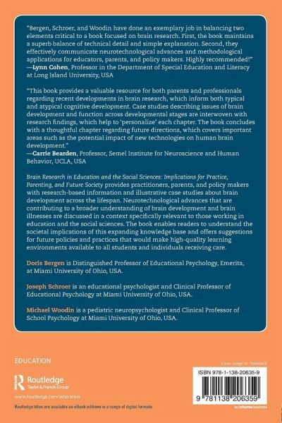 Brain Research in Education and the Social Sciences: Implications for Practice, Parenting, and Future Society¿provides practitioners, parents, and policy makers with research-based information and illustrative case studies about brain development across the lifespan. Neurotechnological advances that are contributing to a broader understanding of brain development and brain illnesses are discussed in äcontext¿specifically relevant to those¿working in education and the social sciences. The book¿enables readers to understand the societal implications of this expanding knowledge base and offers suggestions for future policies and practices that would make¿high-quality learning¿environments available to all students and individuals receiving care.