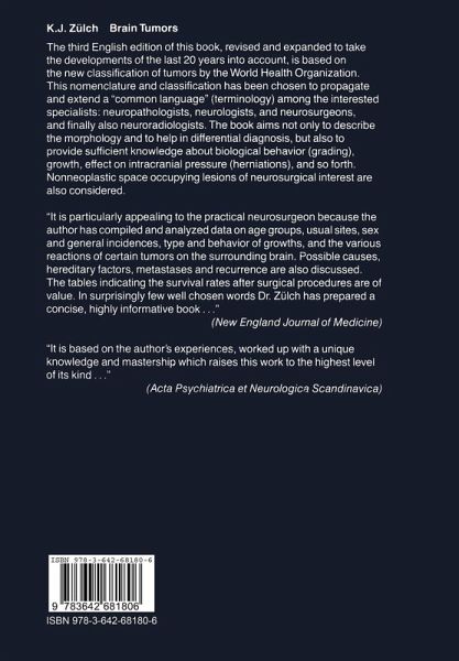 1 Classification of Brain Tumors.- 1.1 Introduction.- 1.2 Historical Development and Present State of Classification.- 1.3 The Basis of Our Present Classification: The Classification of the World Health Organization.- 1.4 Critical Evaluation of the Present State of Classification of Tumors of the Nervous System.- 2 Biological Behavior and Grading (Prognosis).- 2.1 Malignancy - Anaplasia - Dedifferentiation.- 2.1.1 Definition of Benignity and Malignancy.- 2.1.2 Other Characteristics of Anaplasia and Malignancy.- 2.2 Prognosis - Biological Evaluation - Postoperative Survival Time- The Problem of Grading.- 2.2.1 Clinical Malignancy.- 2.2.2 Tumor Groups With Identical Histology and Similar Location, Age and Sex.- 2.2.3 Statistical Data on the Postoperative Survival of Patients.- 2.2.4 The Problem of Grading.- 3 The Origin of Brain Tumors.- 3.1 Current Concepts.- 3.2 Experimental Brain Tumors (Carcinogenic Substances - Viral Induction - Others).- 3.3 Hereditary Factors.- 3.3.1 Tumors in Twins.- 3.3.2 Familial and Hereditary Brain Tumors.- 3.3.3 Familial Systematic Hamartoblastomatoses (Phakomatoses).- 3.3.3.1 Neurofibromatosis.- 3.3.3.2 Tuberous Sclerosis.- 3.3.3.3 Systematic Angiomatosis of the CNS and Eye (von Hippel-Lindau Disease).- 3.3.3.4 Sturge-Weber Disease.- 3.4 Traumatic Brain Tumors.- 3.5 "Composition" and "Mixed" Tumors.- 3.6 Transplantability of Human Brain Tumors - Immunological Aspects.- 3.7 Spontaneous Brain Tumors in Animals.- 4 Epidemiology of Brain Tumors - General Statistical and Biological Data.- 4.1 Age Incidence.- 4.2 Sex Distribution of Patients With Brain Tumors.- 4.3 Frequency.- 4.4 Preferential Sites of Brain Tumors.- 4.5 Diffuse and Multiple Brain Tumors.- 5 Gross Pathology of Brain Tumors.- 5.1 The Process of TumorDiagnosis.- 5.2 Form, Color, Consistency, and Appearance to the Naked Eye.- 6 Histology of Brain Tumors.- 6.1 Architecture and Cell Formation.- 6.2 The Problem of Iso- and Pleomorphism.- 6.3 Nuclei of the Cells.- 6.4 Stroma.- 6.5 Growth.- 6.6 Form and Staining Properties of Tumor Cells.- 7 Regressive Processes.- 7.1 Necrosis.- 7.2 Necrobiosis, Mucoid Degeneration, Cyst Formation, Calcification, Hyalinization, and Fatty Degeneration.- 7.3 Hemorrhages.- 7.4 Other Regressive Processes.- 8 Changes Produced by External Factors Such as Radiation.- 9 Effects of Chemotherapy.- 10 Tumor and Brain.- 10.1 Reactions of the Surrounding Tissue.- 10.2 Brain Edema and Brain Swelling.- 10.3 Increased Intracranial Pressure and its Consequences: Mechanical Distortion and Displacement of Intracranial Contents (Mass Movement and Herniation).- 10.4 Cytology of the Cerebrospinal Fluid With Brain Tumors.- 11 Spontaneous Intra- and Extracranial Metastases of Brain Tumors in Man - Artificial Seeding.- 12 Postoperative Recurrence.- 13 Methods of Pathological Study.- 13.1 Cytopathology.- 13.2 Histochemistry.- 13.3 Tissue Culture.- 13.4 Electron Microscopy.- 13.5 Protein Analysis.- 13.6 Quick Diagnosis.- 13.6.1 Smear Technique.- 13.6.2 Quick Frozen Section.- 14 Autopsy Techniques.- 14.1 General Introduction.- 14.2 Fixation.- 14.3 Brain Cutting.- 14.4 Routine Histologic Examination.- 14.5 Selection of Stains for Special Tissues.- 14.6 Selection of Stains for Particular Tumor Groups.- 15 Tumors of Neuroepithelial Tissue.- 15.1 Astrocytic Tumors.- 15.1.1 Astrocytomas.- 15.1.2 Pilocytic Astrocytomas.- 15.1.3 Subependymal Giant Cell Astrocytomas (Ventricular Tumors of Tuberous Sclerosis).- 15.1.4 Astroblastomas.- 15.1.5 Anaplastic (Malignant) Astrocytomas.- 15.2 Oligodendroglial Tumors.- 15.2.1Oligodendrogliomas.- 15.2.2 Mixed Oligo-Astrocytomas.- 15.2.3 Anaplastic (Malignant) Oligodendrogliomas.- 15.3 Ependymal and Choroid Plexus Tumors.- 15.3.1 Ependymomas.- 15.3.1.1 Myxopapillary Ependymomas.- 15.3.1.2 Papillary Ependymomas.- 15.3.1.3 Subependymomas.- 15.3.2 Anaplastic Ependymomas.- 15.3.3 Choroid Plexus Papillomas.- 15.3.4 Anaplastic Choroid Plexus Papillomas.- 15.4 Pineal Cell Tumors.- 15.4.1 Pineocytomas.- 15.4.2 Pineoblastomas.- 15.4.3 Pinealomas.- 15.4.4 Suprasellar (Ectopic) Pinealomas/Germinomas.- 15.5 Neuronal Tumors.- 15.5.1 Gangliocytomas.- 15.5.2 Gangliogliomas.- 15.5.3 Ganglioneuroblastomas.- 15.5.4 Anaplastic (Malignant) Gangliocytomas/Gangliogliomas.- 15.5.5 Neuroblastomas - Retinoblastomas - Sympathoblastomas.- 15.6 Poorly Differentiated and Embryonal Tumors.- 15.6.1 Glioblastomas.- 15.6.1.1 Glioblastomas With Sarcomatous Component.- 15.6.1.2 Giant Cell Glioblastomas.- 15.6.2 Medulloblastomas.- 15.6.2.1 Desmoplastic Medulloblastomas.- 15.6.2.2 Medullomyoblastomas.- 15.6.3 Medulloepitheliomas.- 15.6.4 Primitive Polar Spongioblastomas.- 15.6.5 Gliomatosis Cerebri.- 16 Tumors of Nerve Sheath Cells.- 16.1 Neurilemmomas.- 16.2 Anaplastic (Malignant) Neurilemmomas.- 16.3 Neurofibromas.- 16.4 Anaplastic (Malignant) Neurofibromas.- 17 Tumors of Meningeal and Related Tissues.- 17.1 Meningiomas.- 17.1.1 Meningotheliomatous Meningiomas.- 17.1.2 Fibrous (Fibroblastic) Meningiomas.- 17.1.3 Transitional (Mixed) Meningiomas.- 17.1.4 Psammomatous Meningiomas.- 17.1.5 Angiomatous Meningiomas.- 17.1.6 Papillary Meningiomas.- 17.1.7 Anaplastic (Malignant) Meningiomas.- 17.1.8 Melanocytic Meningiomas.- 17.2 Meningeal Sarcomas.- 17.2.1 Fibrosarcomas.- 17.2.2 Polymorphic Cell Sarcomas.- 17.2.3 Primary Meningeal Sarcomatosis (Diffuse Sarcomatosis of theMeninges).- 17.2.4 Circumscribed Arachnoidal Sarcomas of the Cerebellum.- 17.2.5 Rhabdomyosarcomas.- 17.3 Xanthomatous Tumors: Fibroxanthoma - Xanthosarcoma (Malignant Fibroxanthoma).- 17.4 Primary Melanotic Tumors: Melanomas and Meningeal Melanomatosis.- 17.5 Others.- 18 Primary Malignant Lymphomas.- 18.1 Primary Tumors of the Lymphoreticular System.- 18.1.1 Reticulum Cell Sarcomas.- 18.1.2 Adventitial Sarcomas.- 18.1.3 Hodgkin's Disease.- 18.1.4 Plasmocytomas.- 18.1.5 Histiocytosis X.- 18.1.6 Eosinophilic Granuloma (of Bone).- 18.1.7 Burkitt's Lymphoma (African Lymphoma).- 19 Tumors of Blood Vessel Origin.- 19.1 Hemangioblastomas.- 19.2 Monst