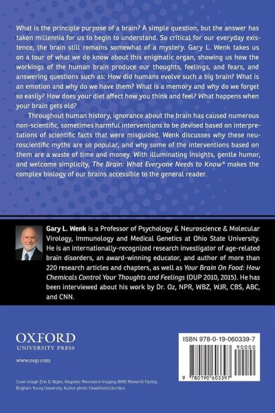 This entertaining tour of the brain answers such fundamental questions as, What is the purpose of the brain? What is an emotion? What is a memory? How does food affect how you feel? Dr. Wenk has skillfully blended the highest scholarly standards with illuminating insights, gentle humor, and welcome simplicity.