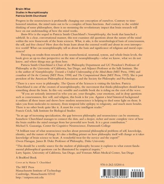 Progress in the neurosciences is profoundly changing our conception of ourselves. Contrary to time-honored intuition, the mind turns out to be a complex of brain functions. And contrary to the wishful thinking of some philosophers, there is no stemming the revolutionary impact that brain research will have on our understanding of how the mind works. Brain-Wise is the sequel to Patricia Smith Churchland's Neurophilosophy, the book that launched a subfield. In a clear, conversational manner, this book examines old questions about the nature of the mind within the new framework of the brain sciences. What, it asks, is the neurobiological basis of consciousness, the self, and free choice? How does the brain learn about the external world and about its own introspective world? What can neurophilosophy tell us about the basis and significance of religious and moral experiences? Drawing on results from research at the neuronal, neurochemical, system, and whole-brain levels, the book gives an up-to-date perspective on the state of neurophilosophy—what we know, what we do not know, and where things may go from here.