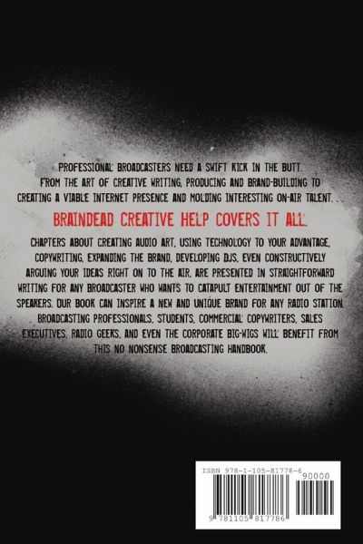 It's time to reinvent radio in a new age of audio entertainment. In the aftermath of radio station consolidation throughout the 90s and early 2000s, Production directors, DJs, Promotions directors, and Programmers have been relying on unoriginal, insipid methods of running their stations (or ruining their stations). New technology has arrived that has put radio on the entertainment hit-list. Now, it's time to create new radio that will not only keep fans listening, but will attract a whole new base of listeners. From the art of creative writing, producing and brand building to creating a viable internet presence and molding interesting on-air talent - Braindead Creative Help covers it all. Broadcasting professionals, students, commercial copywriters, sales executives, radio geeks, and even the corporate big-wigs will benefit from this no nonsense broadcasting handbook.