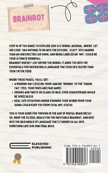 In a world where Gen-A speaks in words that sound like the inanities uttered by a stroke victim, Brainrot is your ultimate skibidi guide to decoding the chaos of meme culture, post-Covid slang, and TikTok virality. This is more than a book with definitions for slang words. It's a deep dive into the history of each word, a manual to understanding why the future sounds like "GYATT!" and looks like a Fortnite dance-off between Twitch streamers and Instagram influencers. Master the sacred art of "Rizz", delve into the existentialism of being a main character or an NPC, and boost your aura points by the hundred thousands as you looksmaxx your way to becoming a sigma mogger. In this book, we break down the culture-shifting language of today's youth, from "Fanum Tax" to "Pookie" and everything in between! Whether you're a confused parent trying to keep up with your kids or a millennial realizing that "lit" simply won't cut it anymore, Brainrot has got your back. Packed with irreverent humor and cultural commentary, this book will ensure that you stay relevant in a world moving faster than 5G. The future is here and it's brainrotten. Grab this book and start stacking your aura points, because if you don't know what "edging" means, you're already in Ohio. Perfect For: Internet culture enthusiasts, meme lovers, confused adults, and anyone ready to cook in the kitchen of Internet slang.