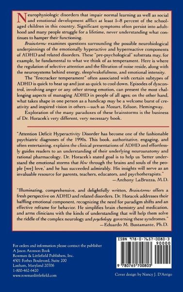 Brainstorms examines questions surrounding the possible neurobiological underpinnings of the emotionally hyperactive and hyperreactive components of ADHD and related disorders. These 'pre-psychological' substrata may, for example, be fundamental to what we think of as temperament.