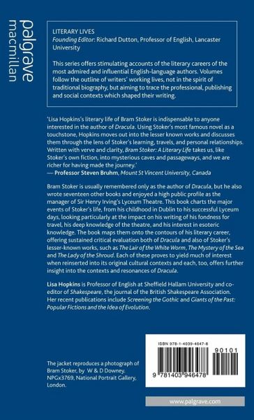 'Lisa Hopkins's literary life of Bram Stoker is indispensable to anyone interested in the author of Dracula. Using Stoker's most famous novel as a touchstone, Hopkins moves out into the lesser known works and discusses them through the lens of Stoker's learning, travels, and personal relationships. Written with verve and clarity, Bram Stoker: A Literary Life takes us, like Stoker's own fiction, into mysterious caves and passageways, and we are richer for having made the journey.' - Professor Steven Bruhm, Mount St Vincent University, Canada