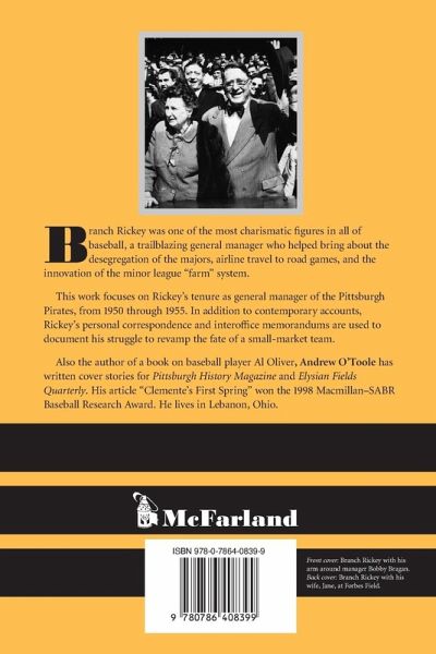 Branch Rickey was one of the most important and charismatic figures in all of baseball, the archetype for all general managers who would follow. His contributions to the game were both numerous and highly significant; they include the desegregation of the majors, airline travel to road games, and the innovation of the minor league "farm" system. This work focuses on Rickey's tenure as the general manager of the Pittsburgh Pirates, from 1950 through 1955. In addition to contemporary accounts, Rickey's personal correspondence and interoffice memorandums are used to document his struggle to revamp the fate of a small-market team.