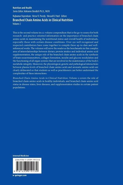 Branched Chain Amino Acids in Clinical Nutrition: Volume 2 covers the role of branched chain amino acids in healthy individuals, and branched chain amino acid status in disease states, liver diseases, and supplementation studies in certain patient populations.