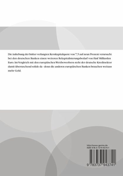 Die Anhebung der bisher verlangten Kernkapitalquote von 7,5 auf neun Prozent verursacht bei den deutschen Banken einen weiteren Rekapitalisierungsbedarf von fünf Milliarden Euro. Im Vergleich mit den europäischen Wettbewerbern steht der deutsche Kreditsektor damit überraschend solide da - denn die anderen europäischen Banken brauchen weitaus mehr Geld.