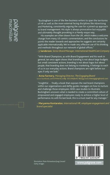'I found this book excellent (and I've read quite a few books on the same subject). Ian Buckingham manages to clearly explain the importance of brand engagement & employee engagement... Engaging employees to love your brand, talk about your brand and stay with your brand, is as critically important now as it ever was - particularly during these economically dynamic times...Brand Champion is well worth the read' Stephanie Lunn, international HR executive 'What makes Brand Champions a recommended read is the richness of material on 'how' to build brand enthusiasm. Original cases (from Barbour to British Gas) make a refreshing change from the usual 'cool brand' suspects. There's a treasure trove of tools for you to raid from 'brand superheroes' to 'brand eisteddfods' anything that links individual contribution to bigger brand purpose is to be warmly welcomed.' B2B Marketing Website 'Buckingham is one of the few business writers to span the territories of HR as well as the more external facing disciplines like Advertising and Marketing, consistently arguing the case for a joined-up approach to brand management. His style is always provocative but enjoyable and ultimately thought provoking in a Handy-esque way. His examples are often drawn from the UK, which makes a welcome change from many US-centric commentators, and the conclusions he points the reader towards and approaches he suggests are certainly applicable internationally. We've made very effective use of his thinking and methods throughout our network of global offices.' J. Sanderson, Senior Brand Manager, International HealthCare Company 'With Brand Champions, as with Brand Engagement and his work in general, Ian once again shows that branding is not about large budgets but small consistent actions, branding is not about logos but about people, that branding does not belong to marketing, it belongs to each of us in our everyday actions. Brand champions are right before our eyes if only we look.' Anna