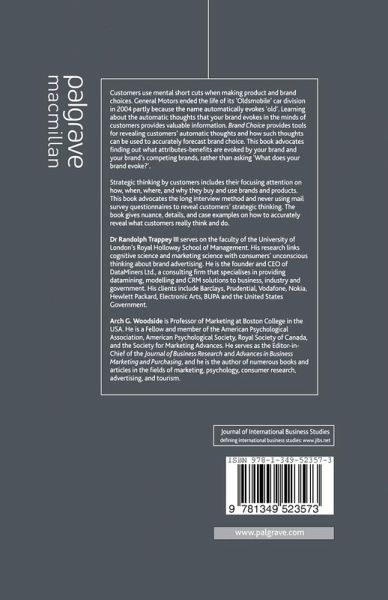 Customers use mental short cuts and they get into ruts when making product and brand choices. Brand Choice provides the tools that reveal customers' automatic thoughts and how such thoughts accurately forecast brand choice. Strategic thinking by customers includes their focusing attention and introspectively telling about how, when, where, and why they buy and use brands and products. For learning customers' strategic thinking, this book advocates in situ use of the long interview method.